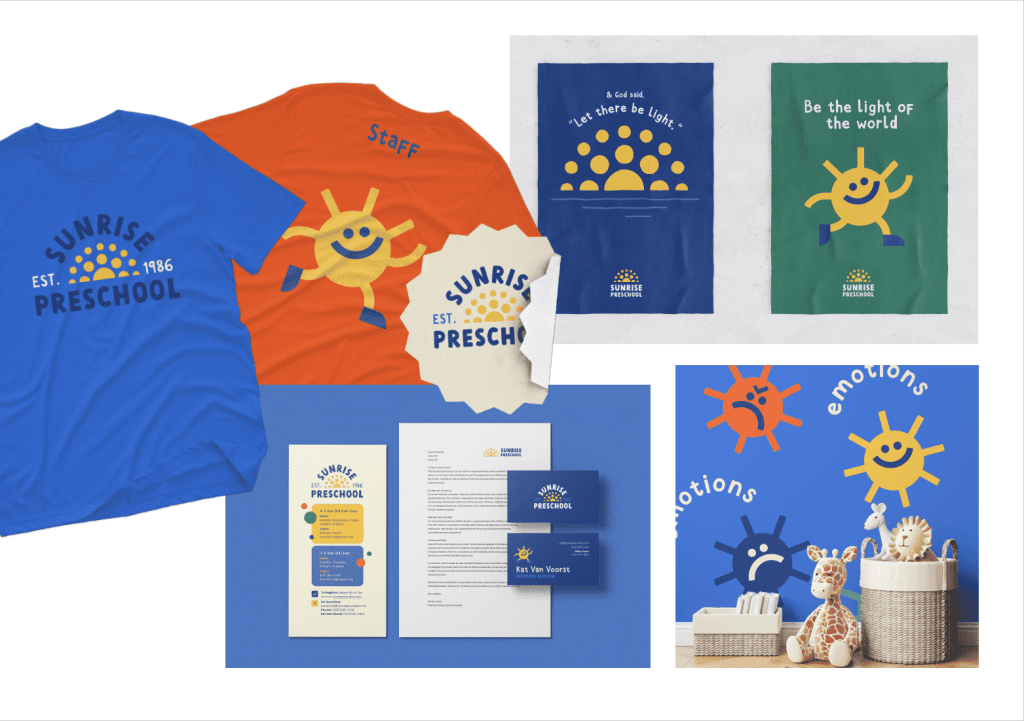 Sunrise Preschool hadn’t redone their branding since they first opened in the 80’s. It was time for a logo that fit the standard of care that the school provided. With every rebrand, I start with studying why the choices were made for the original logo and if any those choices still support the brand story of the future.