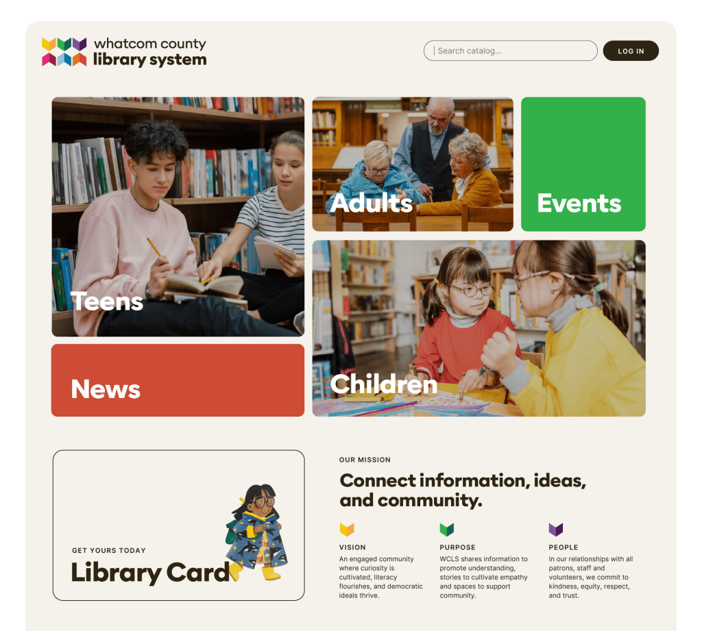 As a creative stretch, I chose an imaginative project to demonstrate how illustration can elevate a clean brand. I picked one very close to my heart: the Whatcom County Library System.
